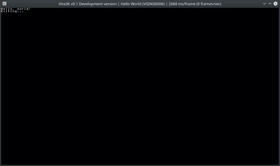./Vita3K hello_world.vpkAfter you run the command, Vita3K will install your program and run it. Then, if you execute the emulator without any